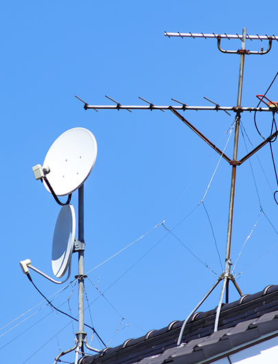 「最近、テレビの映りが悪い」と感じる場合には、アンテナに問題があるかもしれません。アンテナは少しのズレでも、正常に電波を受信できなくなることがあります。とくに台風の後などに電波環境に不具合が起きた場合は、お気軽にご相談ください。